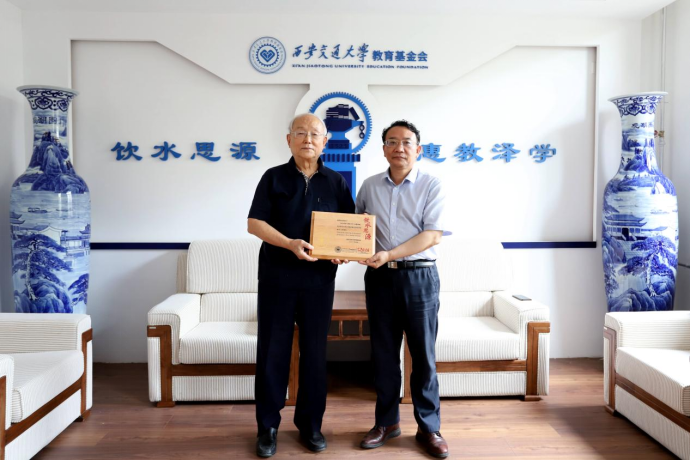 6月2日,侯洵院士来到教育基金会参观指导,西安交通大学副校长席光教授接待侯洵院士并与其亲切座谈。