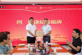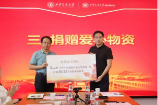 随后,捐赠仪式举行。张周平总经理向学校捐赠爱心物资,周远处长代表学校接受捐赠,赵卫滨秘书长向杨森明副总经理赠送捐赠纪念铭牌。