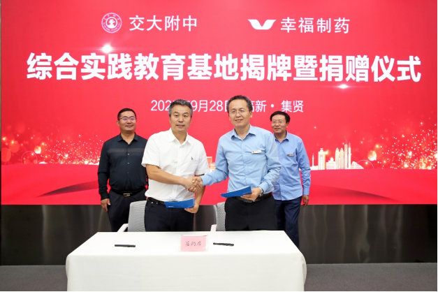 为支持西安交通大学教育事业发展,幸福制药有限公司向我校捐赠100万元,助力西安交通大学附属中学开展社会实践、社会活动以及校内各类学生社团活动等。