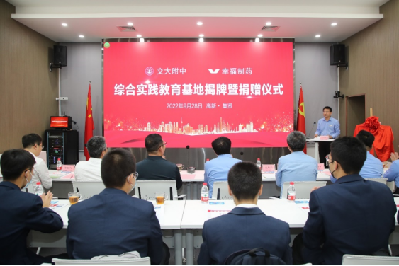 訾艳阳代表交大附中全体师生对幸福制药有限公司心系教育事业、勇担社会责任的善举表示感谢。他表示,交大附中始终坚持五育并举,落实立德树人根本任务。此次捐赠,是新时代企业讲责任、能担当的体现,树立的是榜样,传递的是大爱。