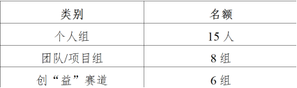 11月5日,教育基金会和团委基于“网络投票+专家复审”得分总和,于微信公众平台公布个人组、团队/项目、创“益”赛道入围决赛名单,名额分配如下: