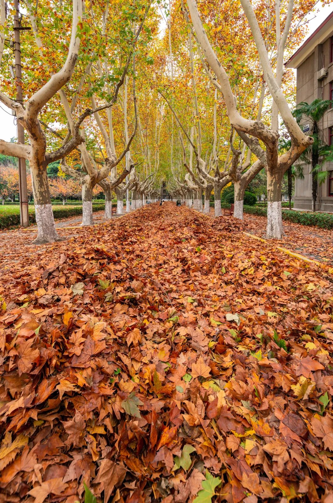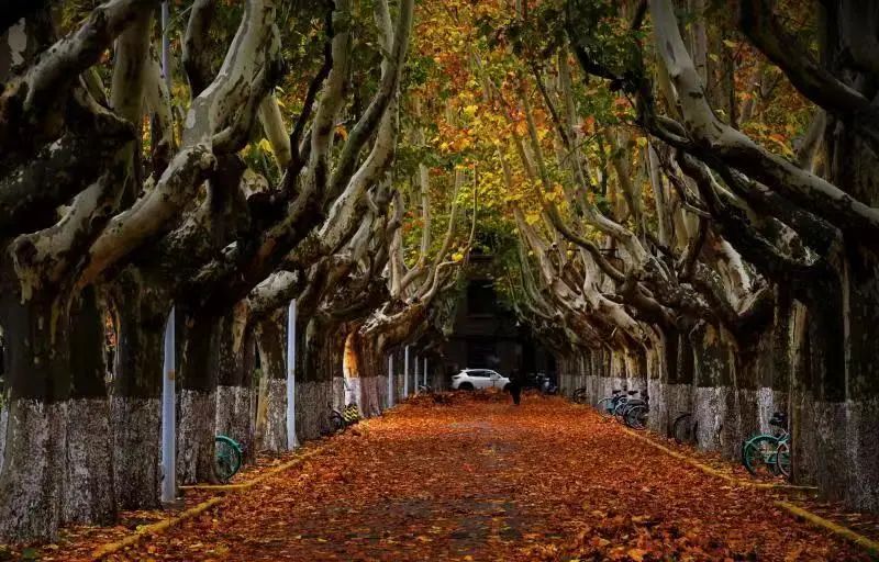 交大的秋是浪漫的,下课的午后,携三两好友,漫步校园里,满地金黄的梧桐叶,都让人觉得,树树皆秋色,山山落晖;交大的秋是诗意的,抬起头,面对遮天蔽日的金黄灿烂,温暖纯净、平和美好。低下头,感受脚下软绵绵的梧桐道,飘飘然恍如进入了仙境。