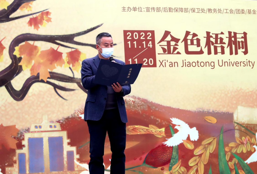 11月18日,西安交通大学第四届文化创意创新大赛颁奖仪式在兴庆校区腾飞塔北广场举行。专家学者、参赛获奖选手、各相关单位代表出席颁奖仪式,教育基金会副理事长、秘书长赵卫滨作开场致辞。