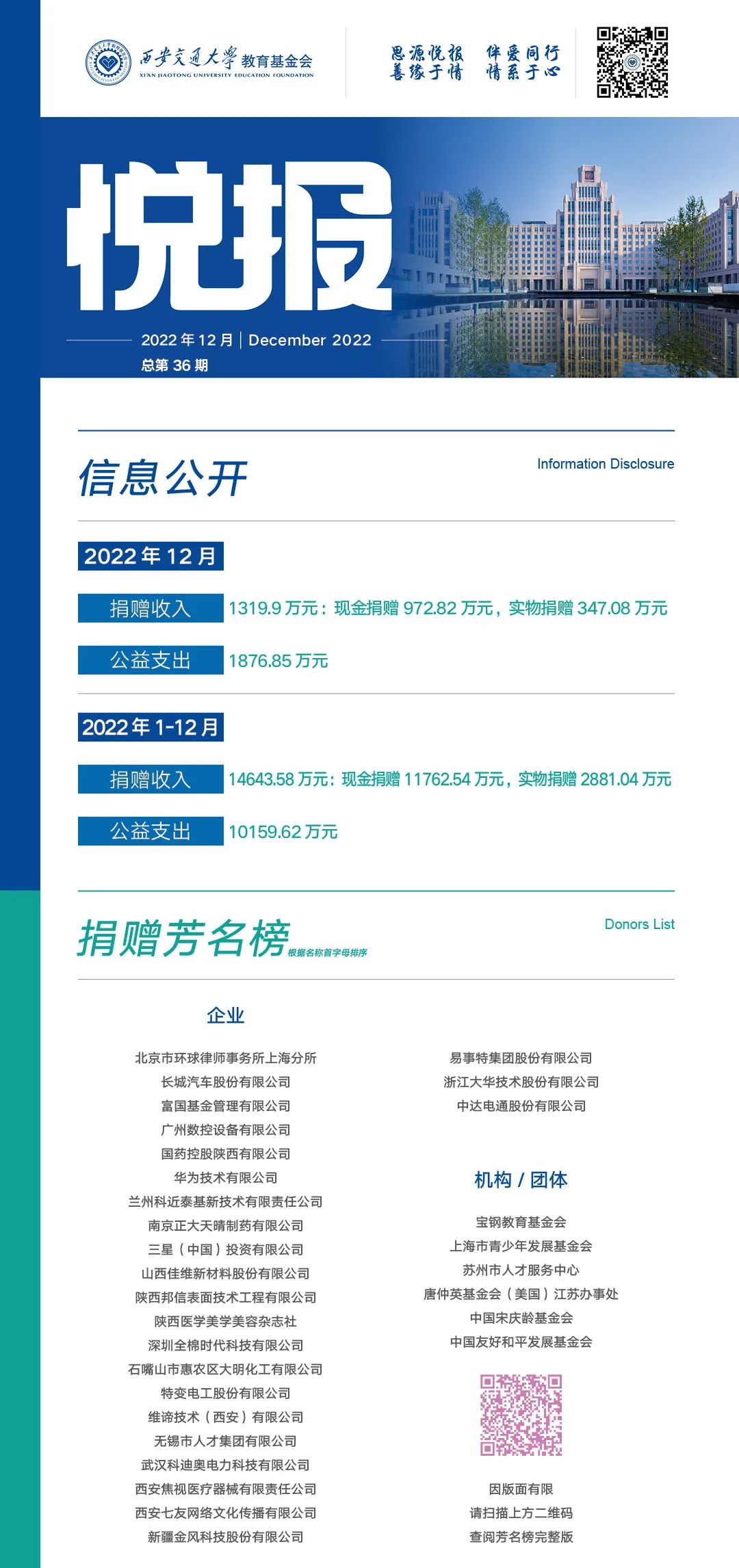 思源悦报,伴爱同行|西安交通大学教育基金会2022年12月悦报