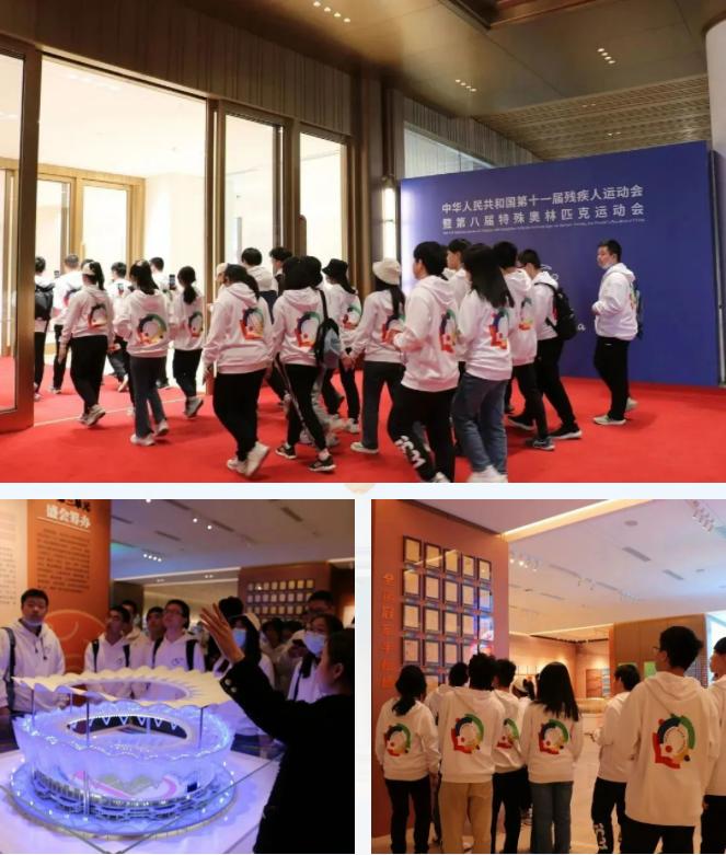 最后一站,越杰学子们来到了第十四届全运会的举办地——西安奥体中心。行走在主场馆的主题展厅里,在工作人员的细致讲解下,同学们学习了全运会的发展历程,对全运会的理念与精神,以及场馆的构造都有了深刻的理解。