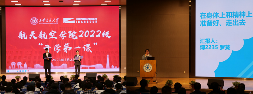 力学试验班2201班刘懿娴和航天2206班李宇航分享了自己入学以来的成长,从不同角度表达了对交大和航天的热爱和期待。博2235班罗蒸作为西安交通大学“越杰计划”首届毕业生和美国大学生数模竞赛交叉建模竞赛杰出获奖者,分享了她在交大的精彩经历和对未来的规划。