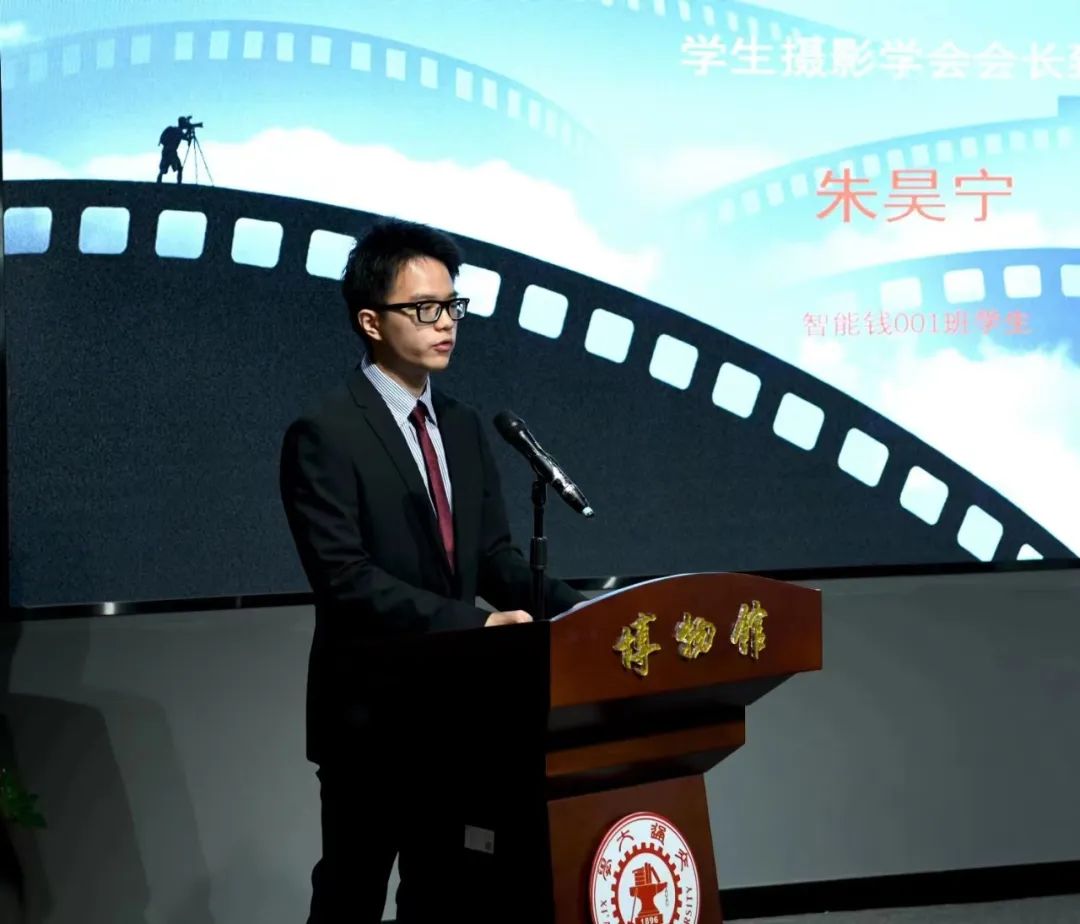 朱昊宁讲述了自己在摄影学会的多段经历,回顾了从1936年到2023年期间的交大摄影,阐述了87年间变化的成像技术和不变的交大精神,表达了作为交大青年的志向和对学校及各位新老会员的感谢。