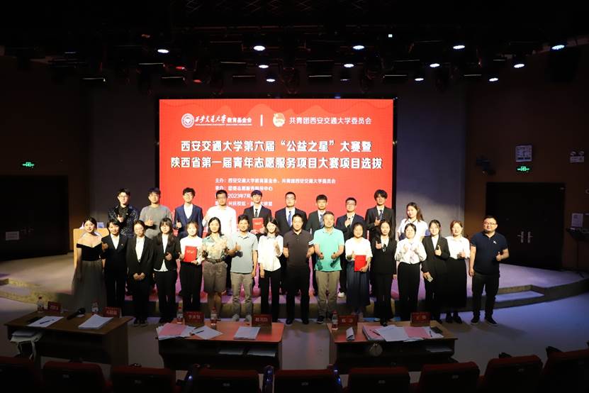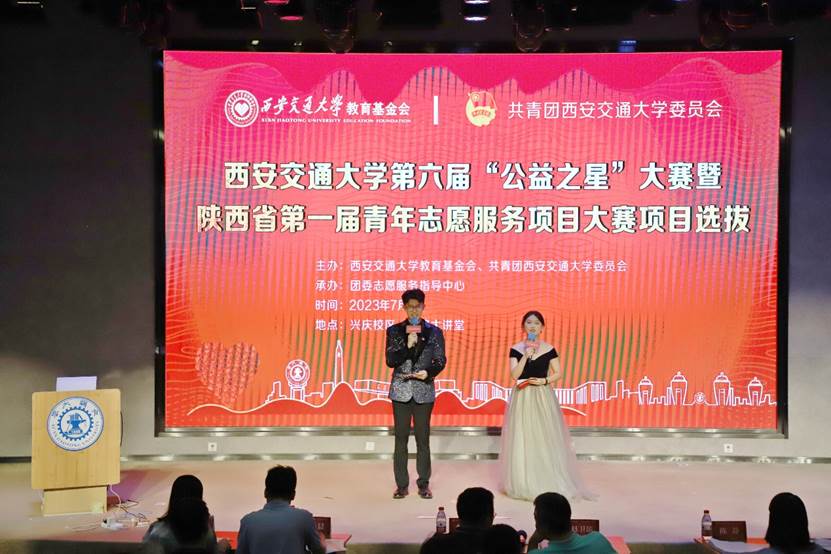 7月2日,由西安交通大学教育基金会、团委主办,学生志愿服务指导中心承办的第六届“公益之星”大赛决赛暨陕西省第一届青年志愿服务项目选拔圆满落幕。本次大赛在兴庆校区丝路大讲堂举行,百余名观众作为大众评审团参与到了此次“公益之星”的评选当中。西安交通大学教育基金会秘书长赵卫滨、团委副书记李开贤,陕西省泰发祥助学助老基金会秘书长陈静,西安市乡村发展基金会项目总监王勤,陕西省千善基金会项目总监石晨晨,西安交通大学志愿者服务中心办公室主管迟凯文出席活动并担任大赛评委。