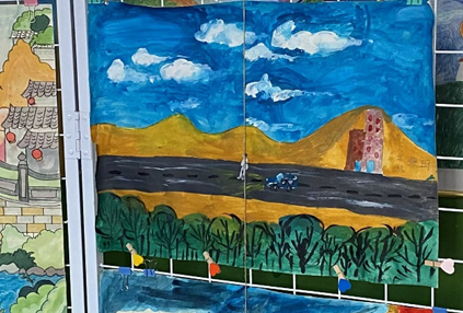 在美术课上,志愿者带领孩子们作画,天马行空地绘制出心中所想。青山下长大的孩子们的想象力无法被条条框框束缚,他们色彩绚烂、大胆新颖的画,有着一种自然、打动人心、毫不矫饰的真诚。