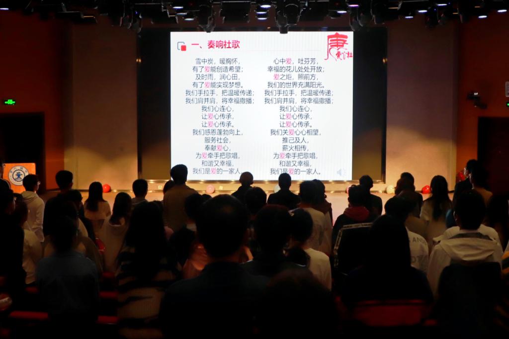 活动开始,现场全体齐唱社歌《爱的一家人》——“我们手拉手,把温暖传递;我们肩并肩,将幸福撒播……”大家深情合唱,声声入心。