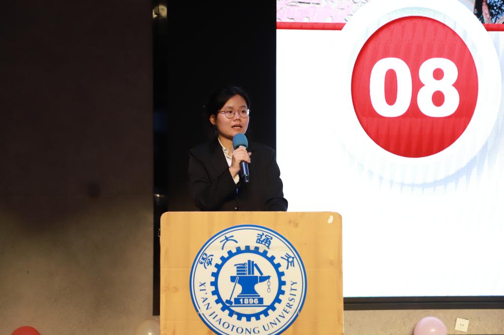 新任社长张佳慧作为社长团代表致辞,表达了对唐仲英基金会、与会嘉宾及社员们的感谢。她表示,爱心社的发展离不开唐仲英基金会、学校领导和老师们的支持,离不开兄弟社团的帮扶,也离不开这二十年来一届又一届唐社志愿者们辛勤的汗水和默默的付出。感谢唐仲英先生兴教助学、奉献社会的善行义举,感谢唐仲英基金会多年来一如既往的支持。希望未来能和社员们一起书写唐仲英爱心社灿烂的新篇章。