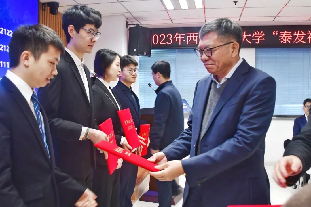杜季平校友向获奖的学弟学妹们表示祝贺。他谈到,近年来,学校各项事业发展蒸蒸日上,为地方和全社会输送了大量优秀人才,作为校友感到无比自豪。泰发祥集团作为陕西本土民营企业,期待着同母校建立更深层次的沟通与交流,也欢迎更多交大学子走进泰发祥、了解泰发祥,深度感知企业的文化,共同书写更加美好的未来。