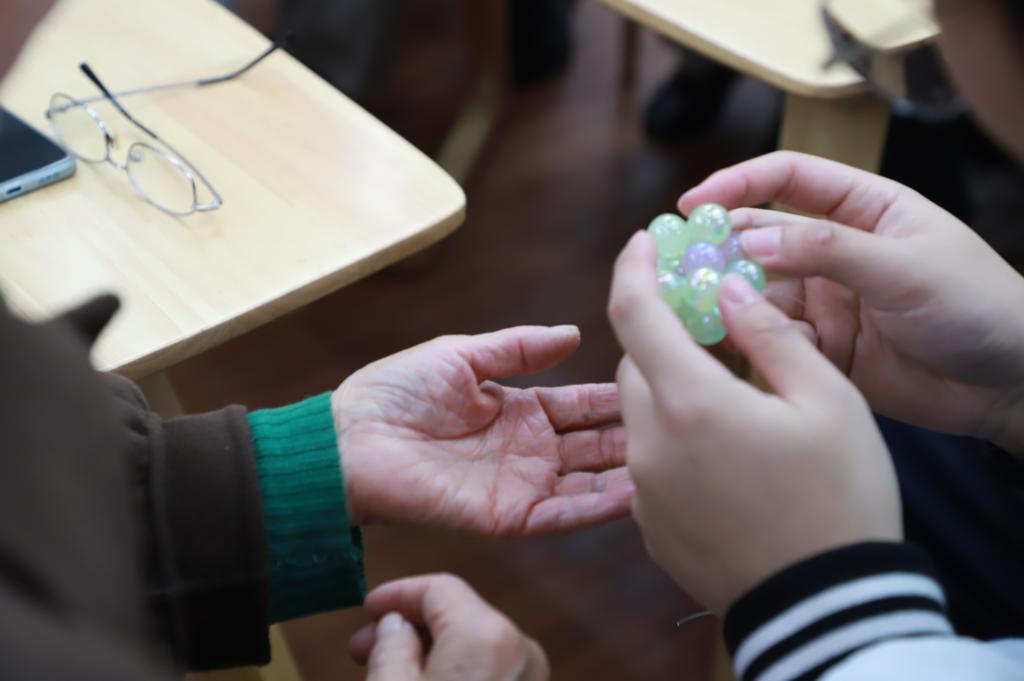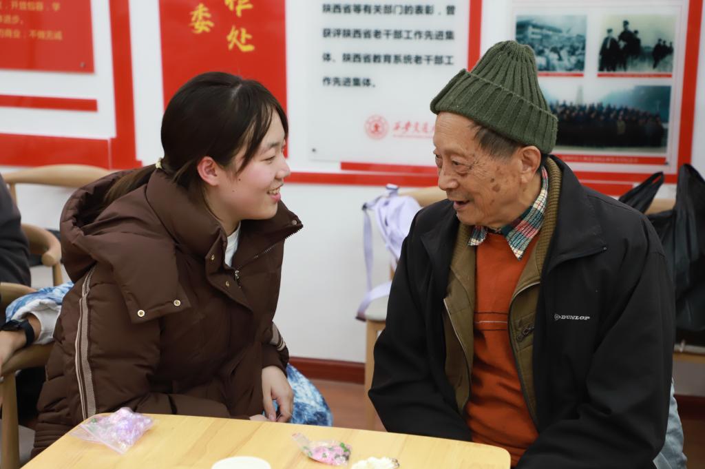 活动伊始,热情洋溢的学生志愿者们与老人们一起做游戏、编手串,其乐融融的氛围感染了在场的每一个人。志愿者们关切地询问老人们的身体状况、生活环境以及日常休闲运动等,老人们也纷纷畅谈回忆自己在交大的学习经历和生活感受。