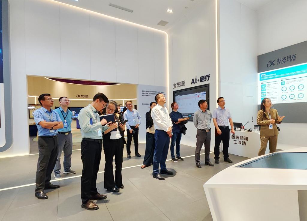 座谈前,单智伟一行参观了人工智能展厅,详细了解人工智能在教育、医疗、城市管理等方面应用情况,与技术人员深入交流。