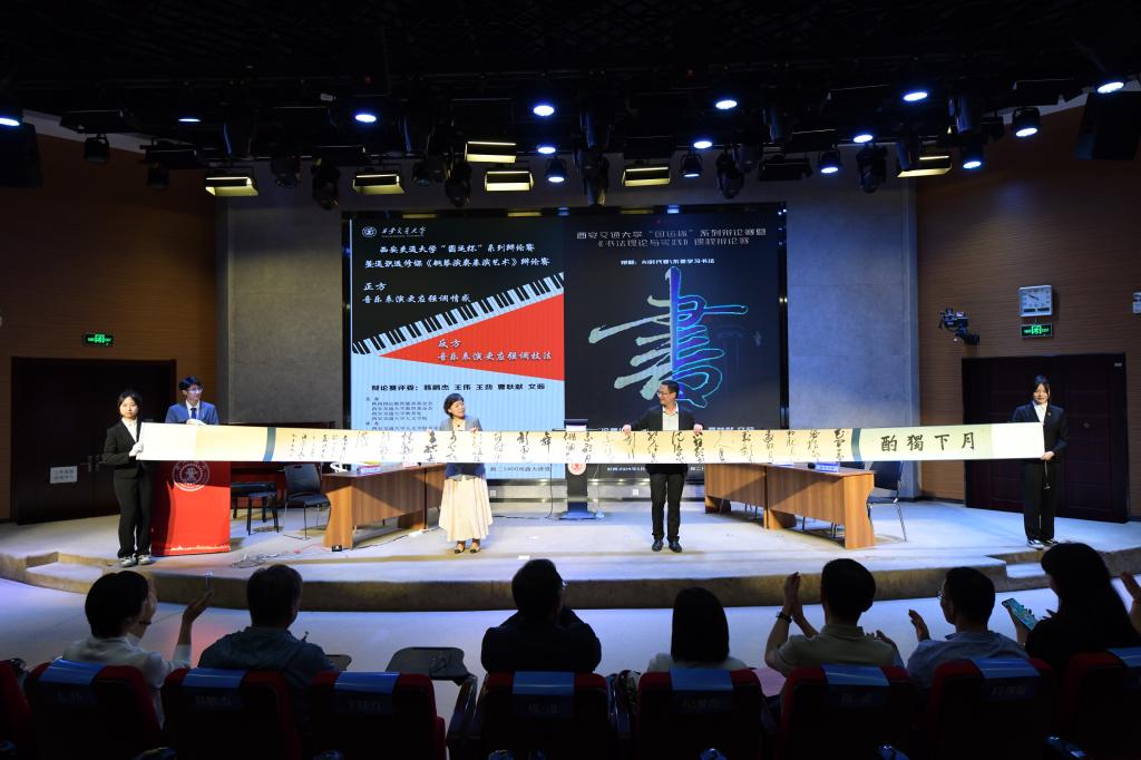 陕西国运教育慈善基金会理事长辛晓红,西安交通大学党委常委、宣传部部长成进,西安交通大学人文学院党委书记纪梦然、继续教育学院副院长陈灵、崇实书院院务主任段继超、教育基金会秘书长助理毛珊、教务处通识科主管杨程,泰和泰律师事务所战略委员会主任董春红律师等领导嘉宾出席本次赛事活动。西安交通大学人文学院韩鹏杰教授,人文学院副院长王伟教授,人文学院党委副书记王劲副教授,人文学院音乐教育中心曹耿献副教授、文茹副教授受邀担任辩论赛评委。本场辩论赛的选手由来自人文学院钢琴演奏表演艺术、书法理论与实践课程的18名同学组成,选手们围绕“音乐表演应该强调感情还是强调技法”和“AI时代要不要学习书法”两大主题展开了激烈辩论。