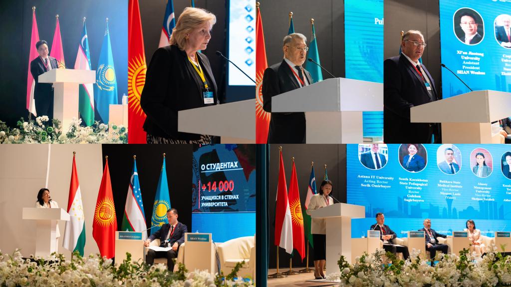 2024年7月4日上午,在上海合作组织成员国元首理事会第二十四次会议在哈萨克斯坦阿斯塔纳举办期间,由“丝绸之路大学联盟”永久秘书处单位组织,西安交通大学、阿里法拉比哈萨克国立大学、阿斯塔纳信息技术大学联合主办的“《上海合作组织高等教育合作成果集》发布会暨高等教育合作与产教融合国际研讨会”在阿斯塔纳信息技术大学举办。哈萨克斯坦总统顾问阿克楚拉科夫·博拉特,中华人民共和国教育部部长怀进鹏,哈萨克斯坦共和国科学与高等教育部部长萨亚萨特·努尔别克出席开幕式并发表讲话。哈萨克斯坦共和国常驻上海合作组织秘书处代表阿科什卡罗夫•努尔兰向会议发来视频致辞。