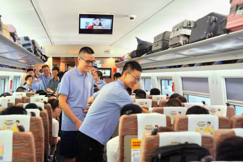 在充满欢声笑语的车厢中,新生志愿者们组织了有奖问答、趣味游戏、才艺表演等一场场别开生面的活动,让飞驰的列车交织成欢乐的海洋。来自不同城市、报考不同专业、怀揣各异梦想的新生们,通过这些活动迅速加深了友谊。他们共同在“熊猫专列”上留下了难忘的回忆,并纷纷打卡留念,记录下这开启新篇章的美好瞬间。