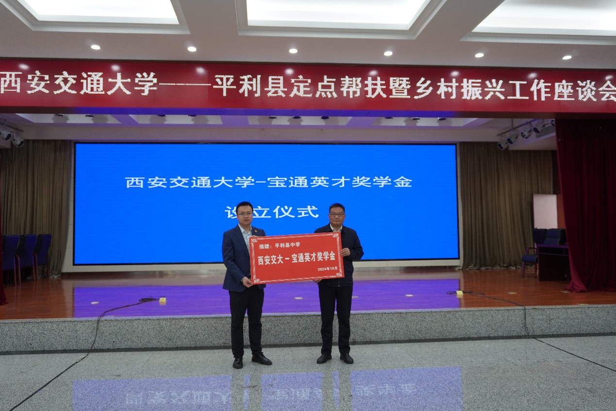 西安交通大学教育基金会与平利县中学共同举行了“西安交大-宝通英才奖学金”设立仪式。
