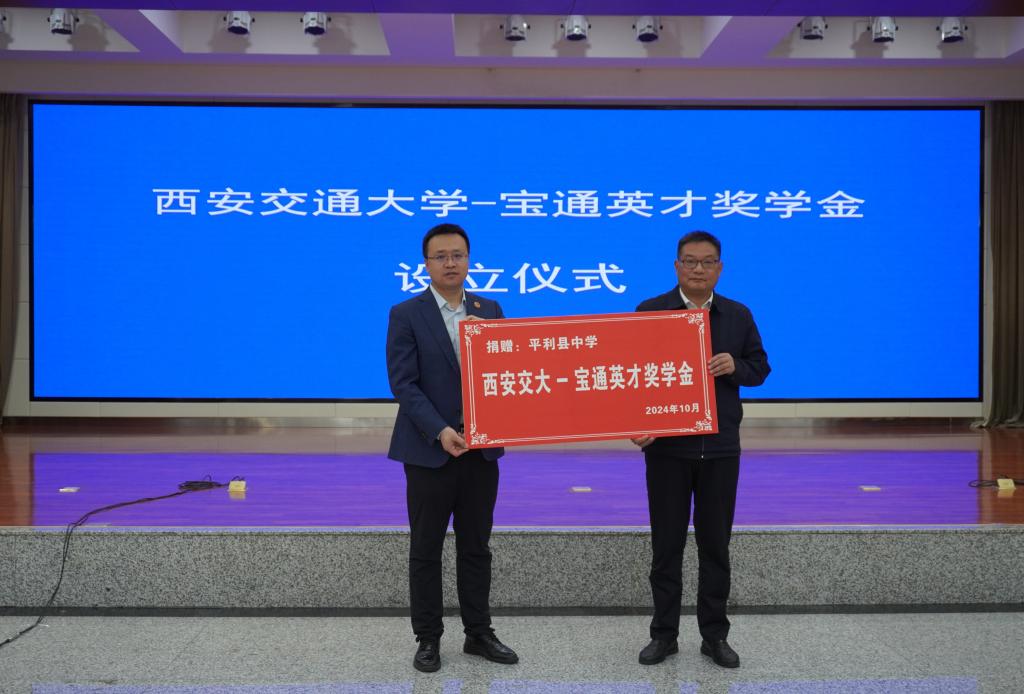 为推动平利县中学教育事业发展,助力优秀学生顺利完成学业,激励学生勤奋学习、努力进取,促进学生在德智体美劳等方面得到全面发展,西安交通大学教育基金会联合无锡宝通科技股份有限公司在平利县中学设立“西安交大-宝通英才奖学金”,每年奖励平利县中学50名品学兼优的高中生。
