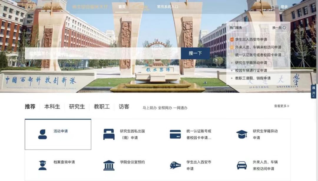 第一步:进入西安交通大学师生综合服务大厅:http://one2020.xjtu.edu.cn