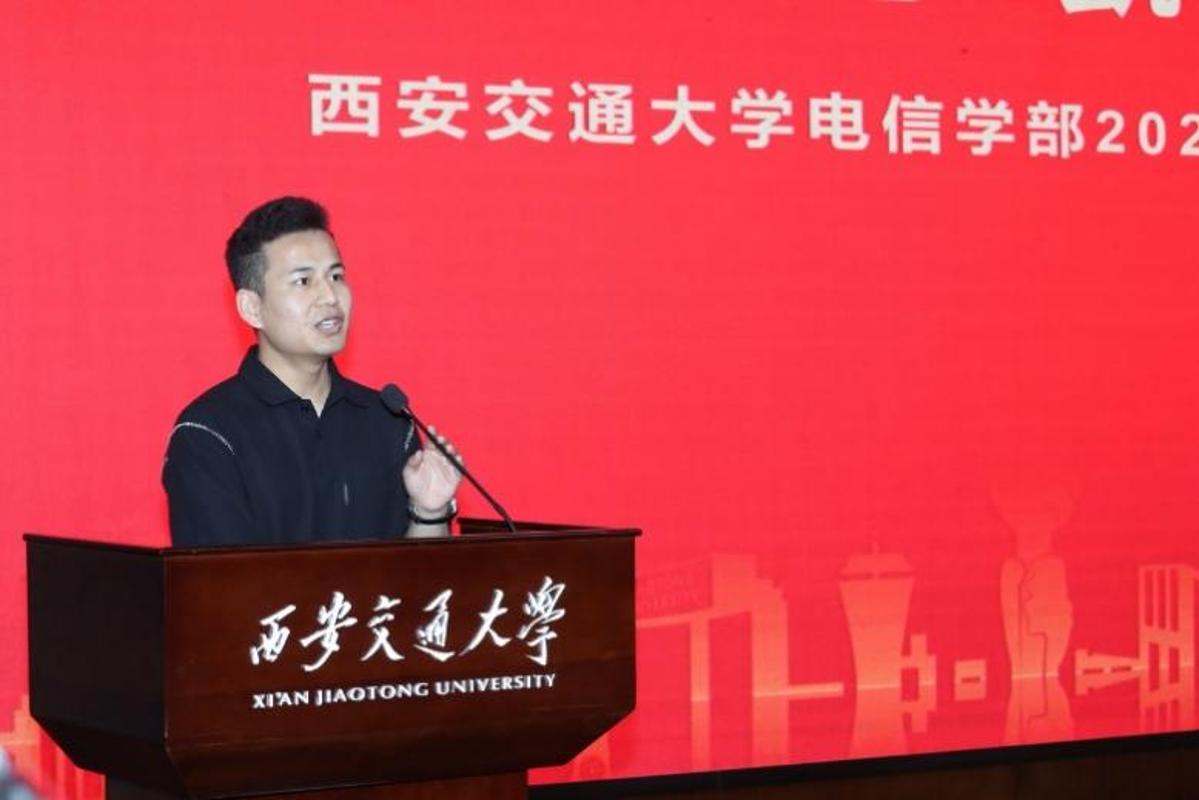 学生代表——西安交通大学电信学部2025应届毕业生马凯向1995届校友致敬,他分享了自己在交大的学习成长经历,表达了对校友们的敬仰和对未来的憧憬,表示将继续传承弘扬西迁精神,在未来的岗位上为母校增光添彩。