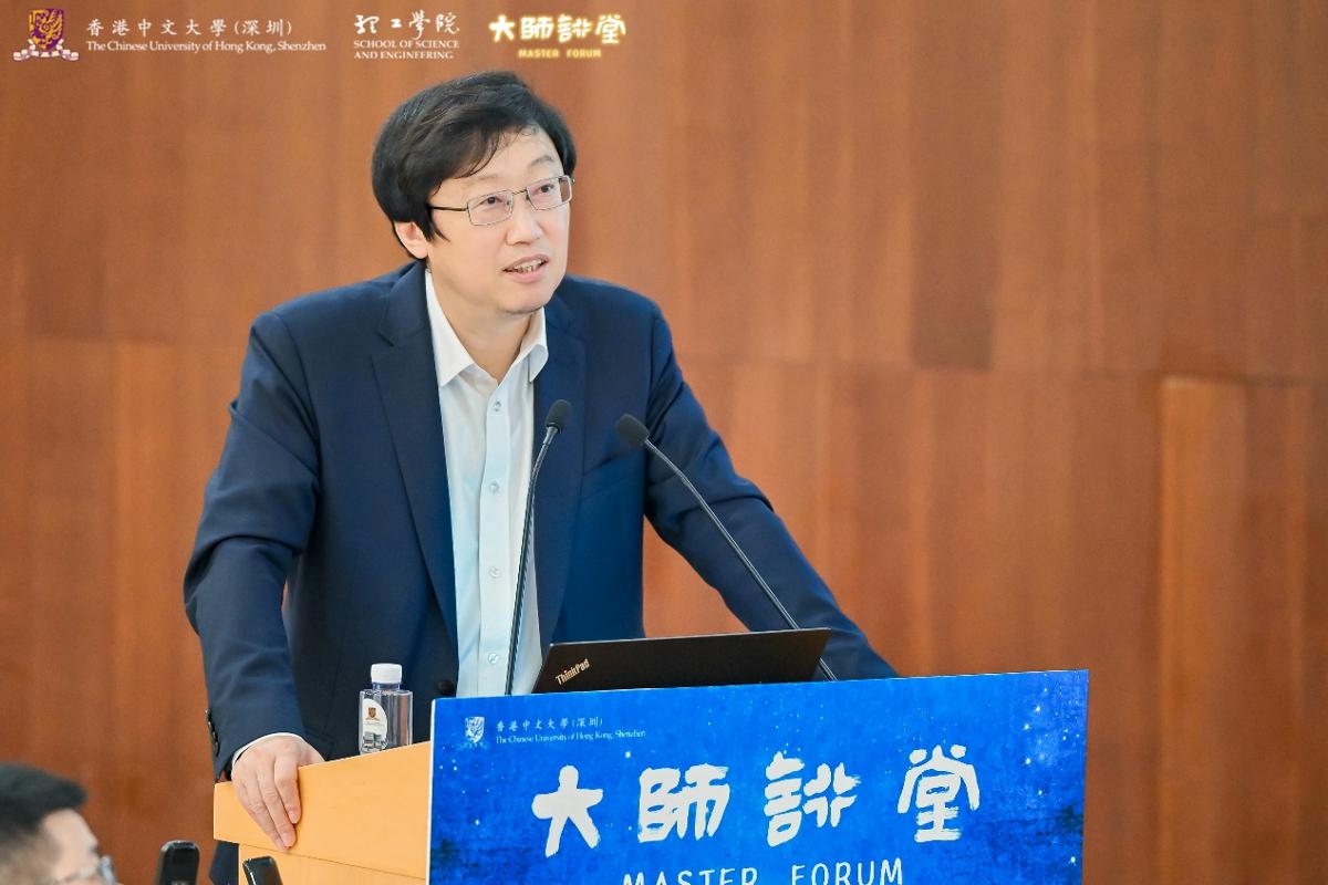 张立群还受邀在香港中文大学(深圳)“大师讲堂”上为师生作题为“面向双碳和可持续发展战略 原创新材料技术与工程应用”的报告。中国科学院院士、香港中文大学(深圳)理工学院院长唐本忠主持。