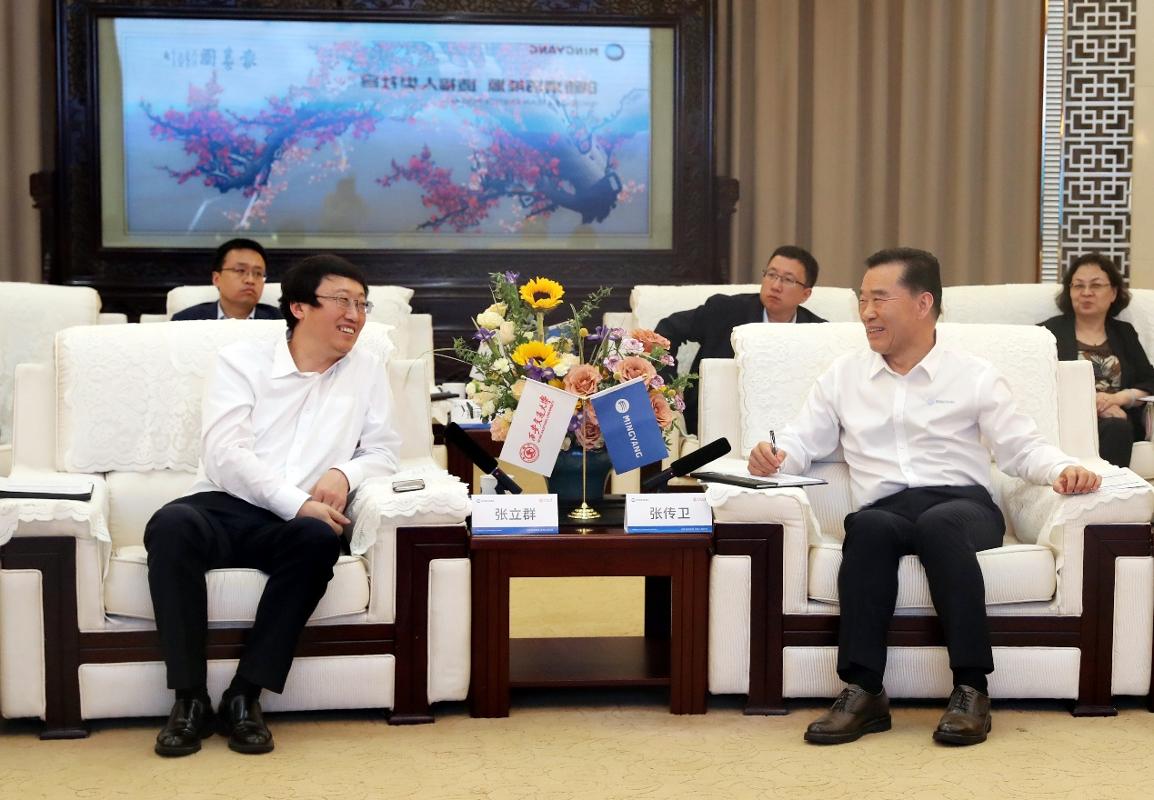 张传卫对张立群一行到访明阳集团表示欢迎。他表示,西安交大和明阳集团有着深厚渊源,去年双方共建了“明阳集团-西安交大先进能源联合研究中心”,并在校企合作中不断探索产学研深度融合的创新模式。希望未来和西安交大继续围绕创新平台、创新体系、创新人才和创新项目展开深入合作,持续聚焦清洁能源、智能电网、柔性直流等多学科专业,在基础研究、联合攻关、成果转化、项目应用等方面加强务实合作,助力经济社会全面绿色转型和中国式现代化绿数经济新体系建设。