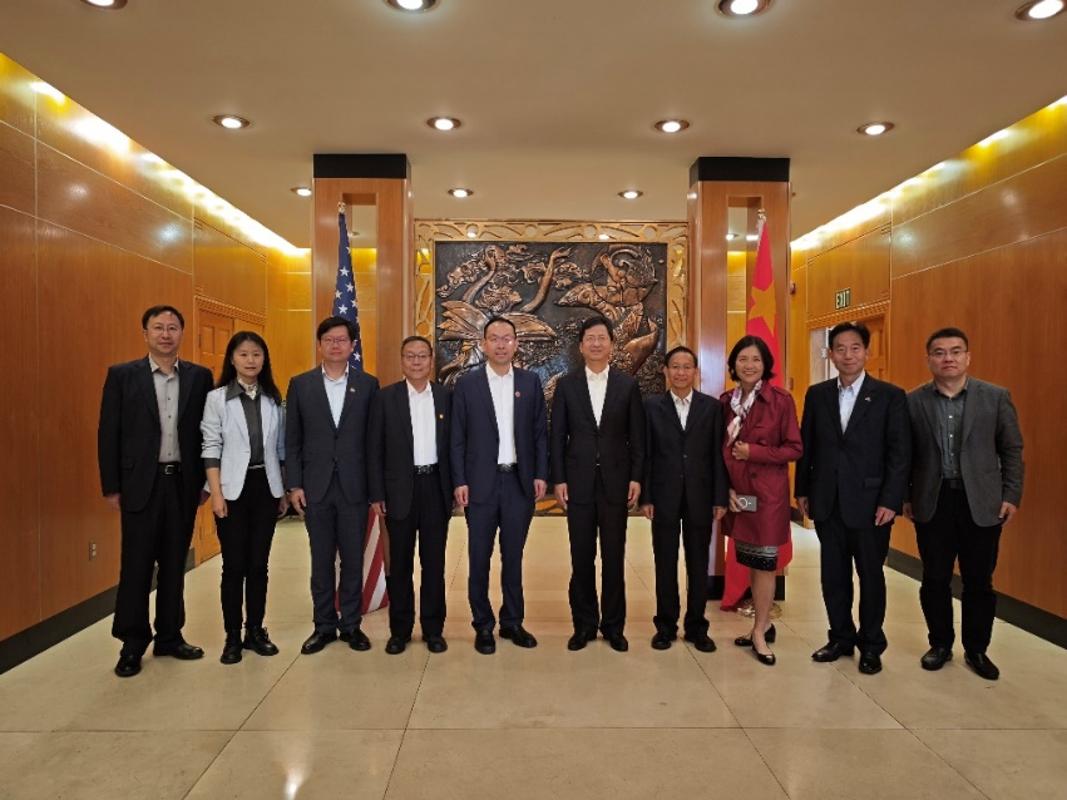 当地时间5月26日,代表团一行拜访了中国驻旧金山总领事馆。中国驻旧金山总领事张建敏、文化参赞向明灿和科技参赞高鹏飞出席座谈会。单智伟表示,西安交大通过发挥自身优势,加强高校间交流合作,动员校友力量等举措,推动中美教育、科技、人文、经贸交流发挥更大作用。张建敏对西安交大代表团来访表示热烈欢迎,对代表团访美所取得的成效表示肯定,他介绍了现阶段中美高等教育合作的现状及工作重点,对学校国际交流合作提出了意见建议。