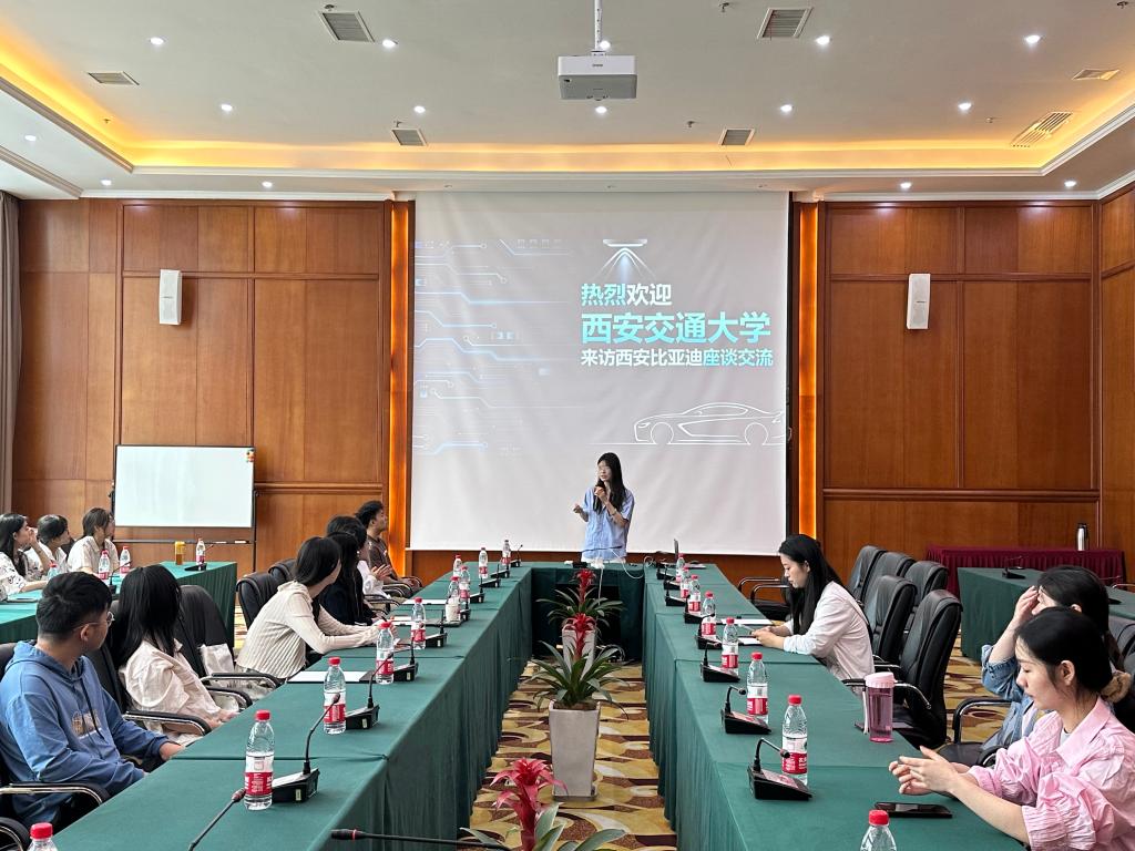 在随后的座谈交流环节,学生们围绕企业的技术创新、社会责任的平衡等问题积极提问,对此比亚迪代表一一回应,并特别强调了企业始终坚持将技术创新与社会价值创造紧密结合,例如通过纯电动车型实现零排放出行,运用云巴系统优化城市交通网络,这些都是“科技向善理念”的具体实践。