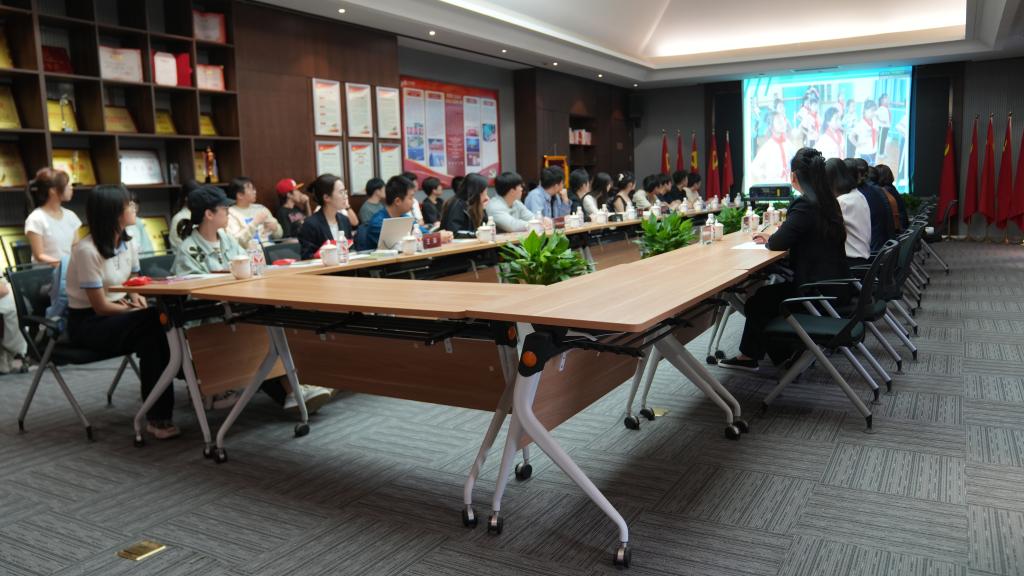 随后,在雷扬扬经理的主持下,活动进入正式交流环节。雷经理首先向师生们详细介绍了大方集团的基本情况,包括企业发展战略、核心经营内容以及企业的文化理念。接下来,现场播放了公益短片《同在蓝天下》。短片中一个个真实的公益场景,生动呈现了大方集团多年来在公益领域的深耕细作。在此基础上,集团代表通过详实的数据和案例,进一步系统介绍了企业近年来在履行社会责任、推动公益事业发展方面的具体举措和取得的成效。