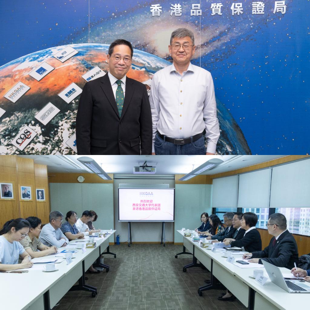 在香港品质保证局,总裁陈沛昌带领团队主要成员与西安交大代表团进行深度交流。他表示期待建立深度合作机制,共同开发多元化服务,助力企业和上市公司在绿色金融及ESG领域的可持续发展。孙早代表学校表达问候,指出要发挥好香港研究院的桥梁纽带作用,并就人才培养、成果转化、高端智库建设等方面,进一步明晰合作路径。双方会晤后,陈沛昌陪同代表团共同访问香港交易所,探索三方合作事宜。