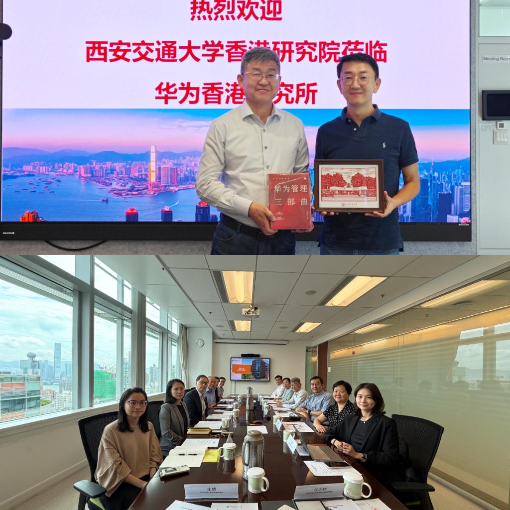 在华为香港研究院,院长耿彦波介绍了研究院的基本情况,孙早介绍了西安交大发展规划,双方围绕在港发展进行交流研讨。
