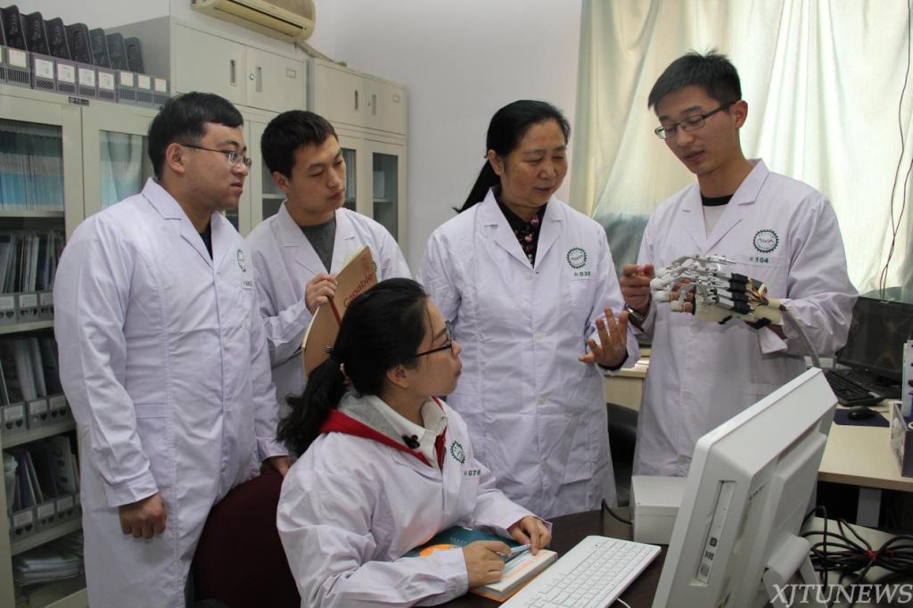 王珏教授(右二)指导学生进行康复设备实验