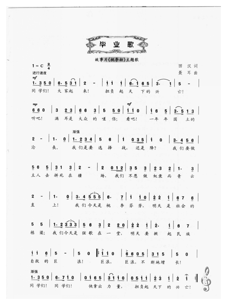 1934年由田汉、聂耳创作的《毕业歌》