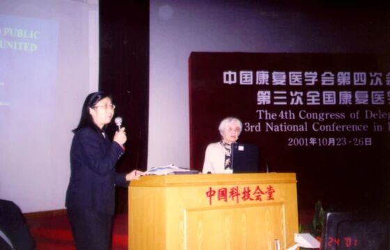 王珏在第三届全国康复医学大会上(2001)为Katherine D. Seelman博士作学术报告翻译
