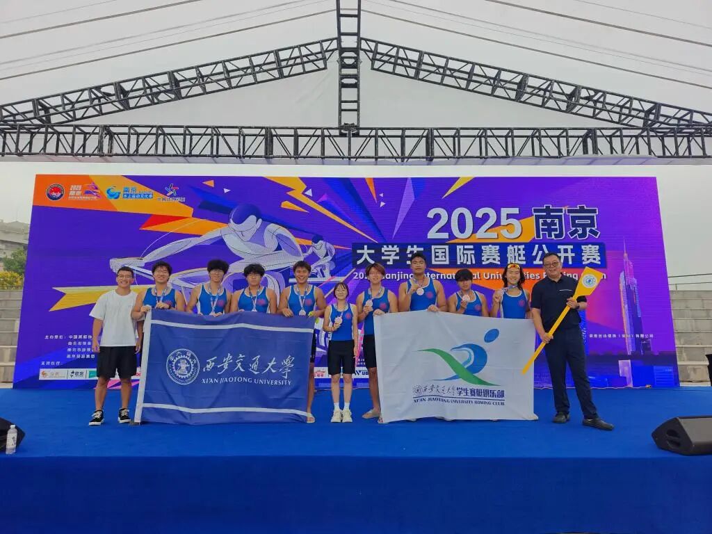 9月13日至14日,南京·大学生国际赛艇公开赛在南京外秦淮河鼓楼水岸·南艺后街段举办。本届赛事吸引了来自全球30余所高校的300余名选手,西安交通大学学生赛艇队派出1名教练和10名队员参赛。队伍凭借出色的团队协作与科学的战术安排,经过激烈角逐荣获总成绩季军。