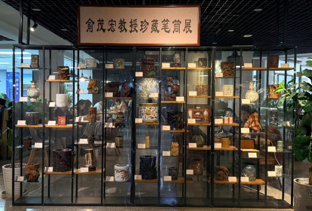 西安交通大学钱学森图书馆俞茂宏教授珍藏笔筒展展柜照片