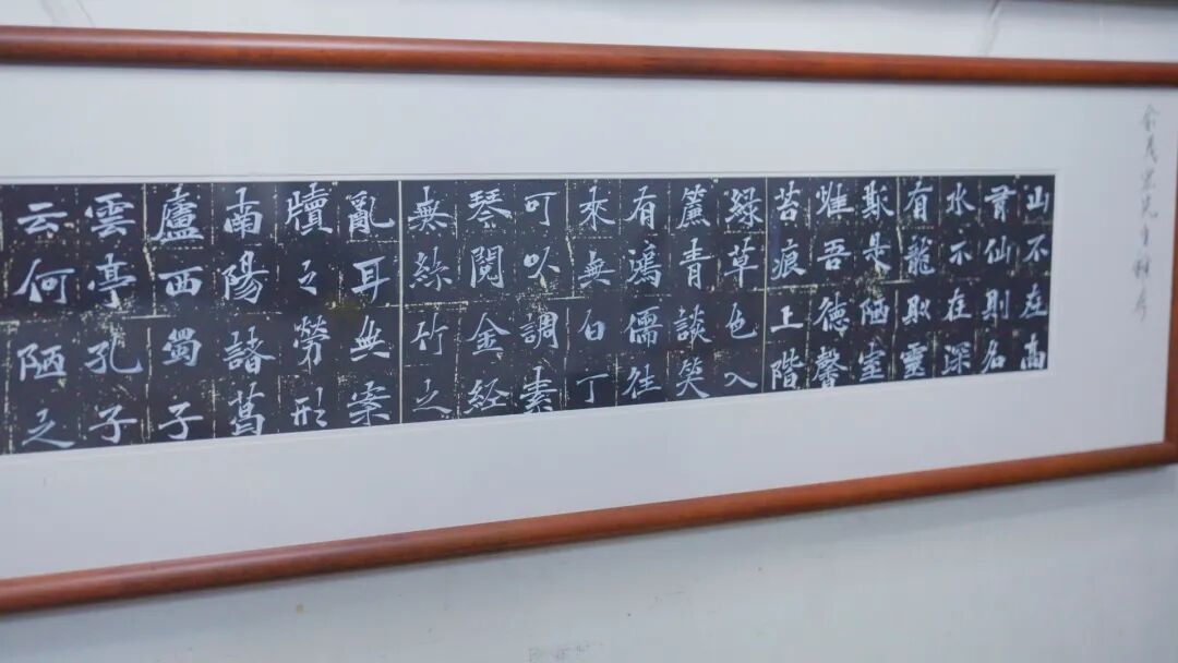 俞茂宏家中悬挂着雕刻作品《陋室铭》