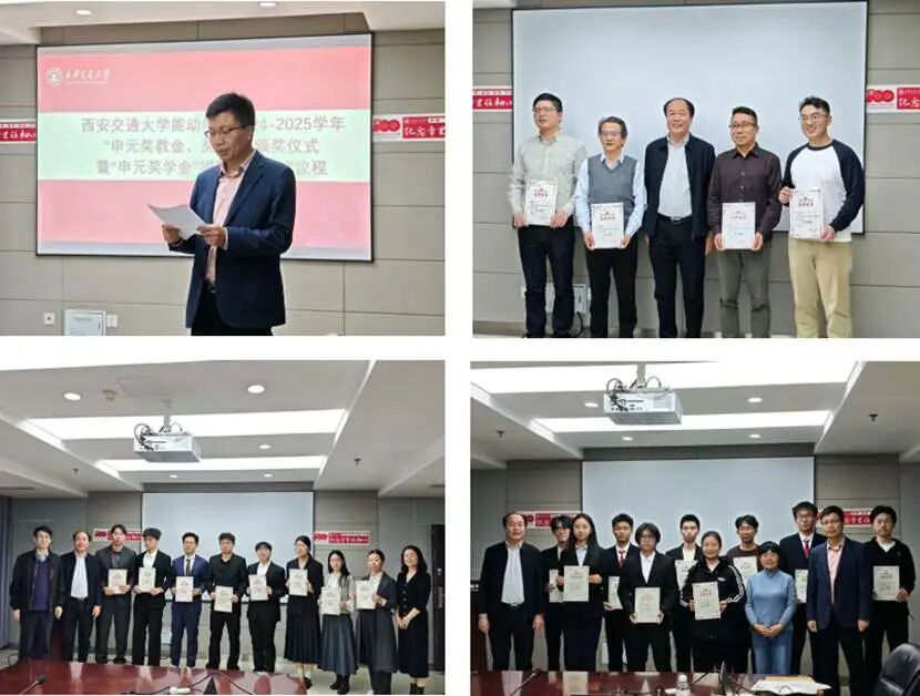 11月29日,2025年“申元奖教金、奖学金”颁奖仪式暨“申元奖学金”捐赠仪式举行。西安交通大学1985届压缩机专业校友、沈阳申元气体压缩机有限责任公司董事长赵东升,沈阳申元自动化科技有限公司总经理刘昶志,西安交通大学能动学院党委副书记韦娜,教育基金会秘书长助理、项目管理部部长毛珊,压缩机工程系主任何志龙教授及企业骨干、教师代表、获奖学生等出席仪式。仪式由能动学院吴伟烽教授主持。