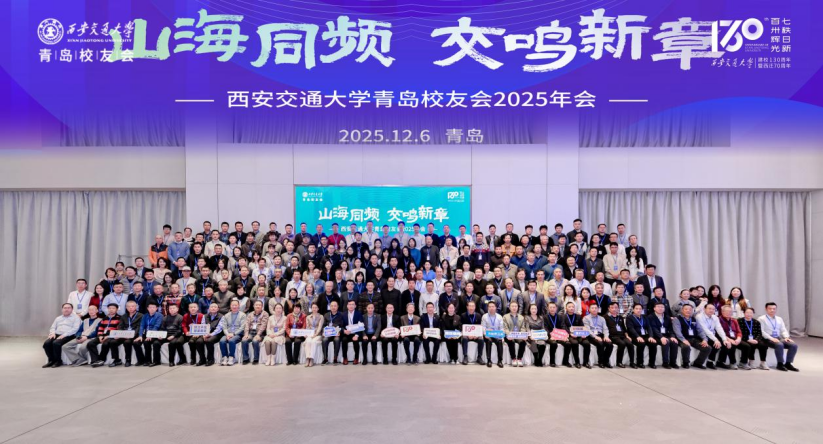 12月6日,以“山海同频 交鸣新章”为主题的西安交通大学青岛校友会2025年会在青岛举行。西安交通大学校友关系发展部主任许佳辉,管理学院党委书记马晓彬、副书记叶宁,教育基金会副秘书长赵力,青岛校友会名誉会长孔心田、会长范大鹏,以及青岛校友、各地校友会代表、兄弟高校在青校友会代表及各界嘉宾共200余人参加。