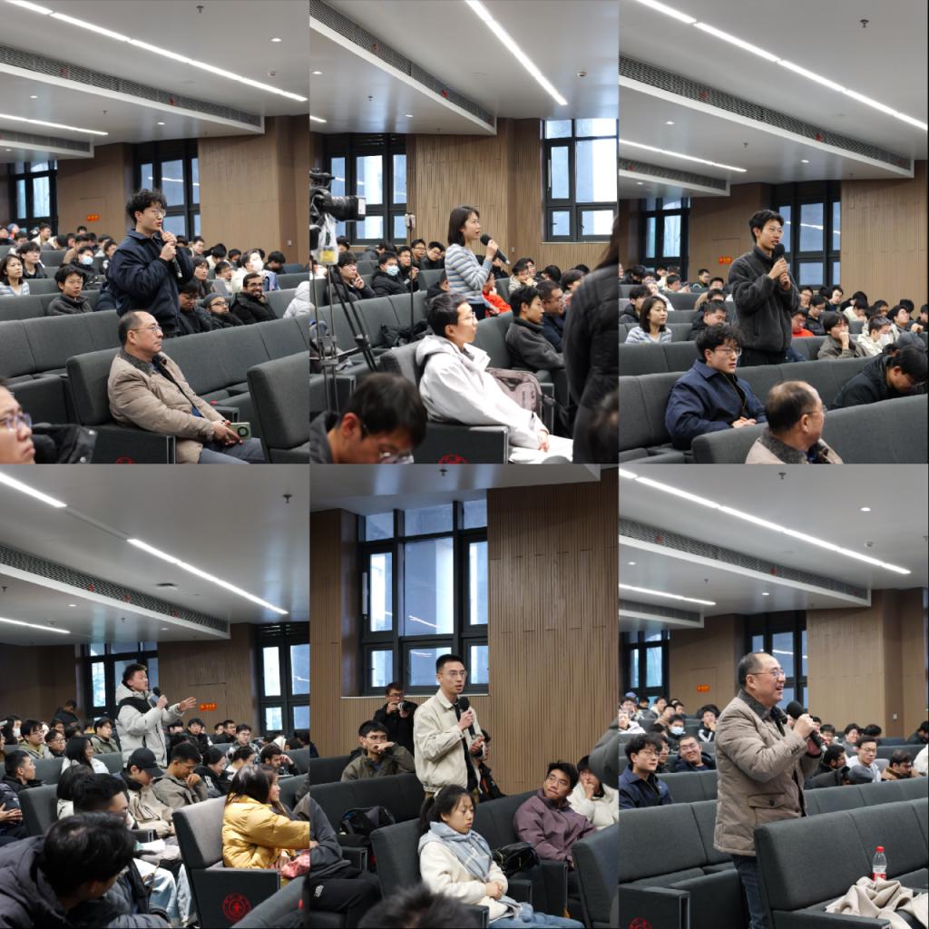 互动环节,师生们围绕个人成长、创新创业等问题踊跃提问。现场气氛热烈,交流深入。余建军校友在逐一解答的同时,鼓励大家“倾听内心的声音”,构建属于自己的人生意义,并在实践中不断修炼自我、成就他人。