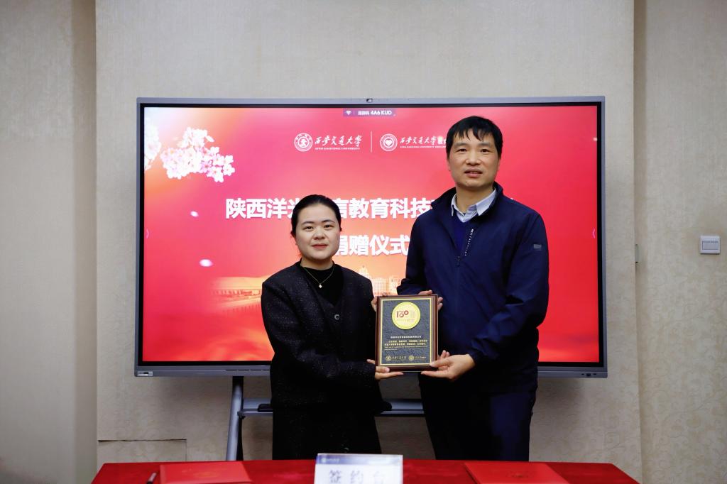 1月13日,洋光教育集团捐赠仪式在兴庆校区举行。洋光教育集团全国运营副总马勇政、西安分校校长林文婷、西安分校副校长雷雅萍、西南片区市场经理刘龙涛,西安分校教学主管刘峰,西安交通大学彭康书院院务主任叶明、电信学部副书记史锋、外国语学院副书记许明、钱学森书院院务主任田博、招生办公室副主任吴梦秋等双方代表出席仪式。仪式由西安交通大学教育基金会秘书长邢晓强主持。