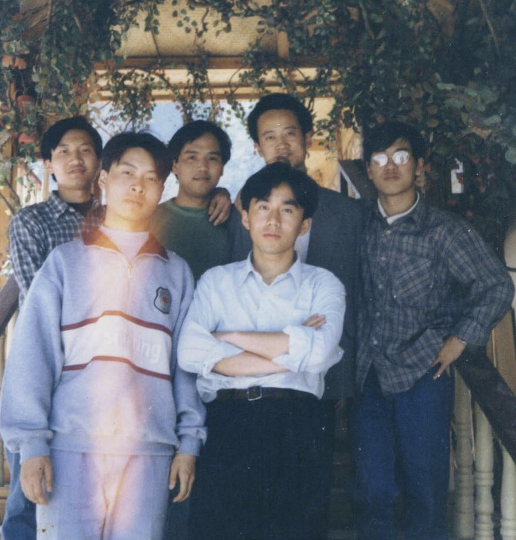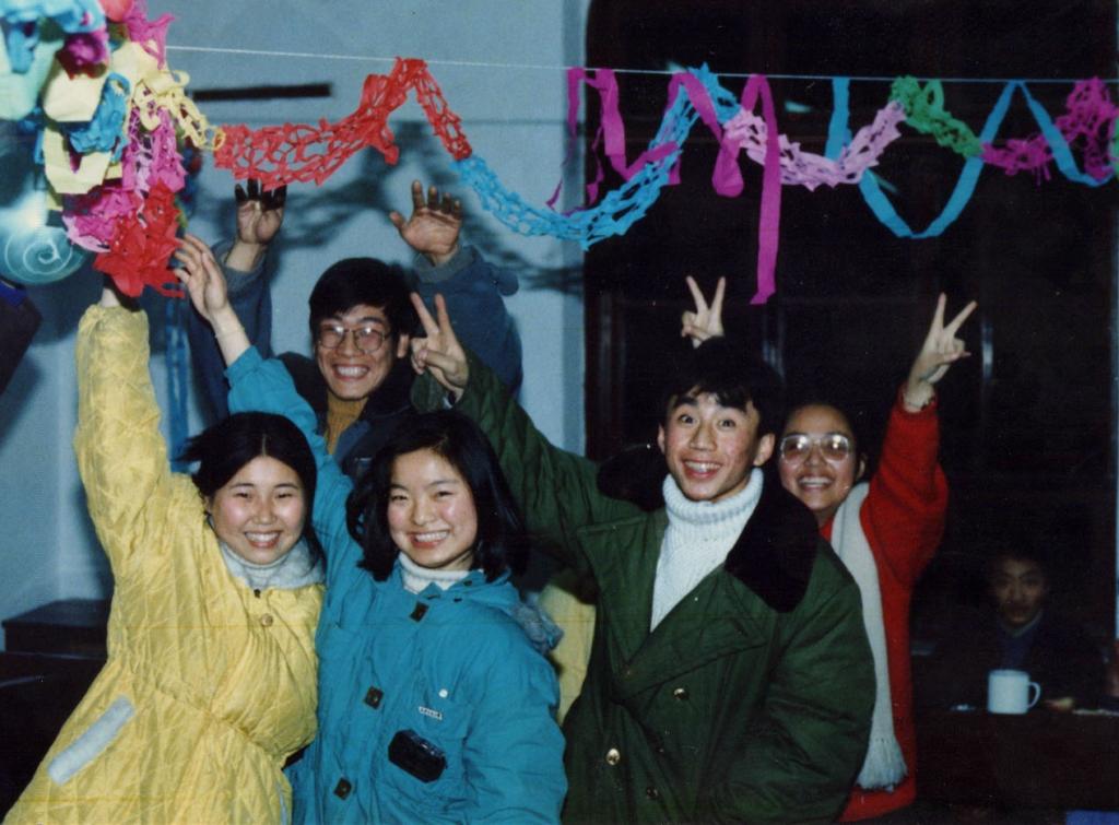 1995年12月25日晚上,计算机55班的同学们举行联欢会,这是班委会的合影。