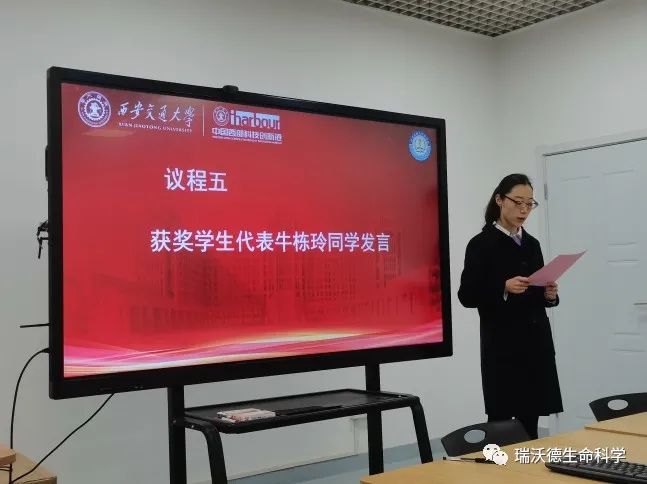 2020年11月24日下午16:00,在医学部基础医学院338会议室举行“瑞沃德基础医学明德奖学金”颁奖仪式。深圳瑞沃德生命科技有限公司副总经理曲科鹏、西安大区经理裴佳霖,西安销售经理王一斐,医学部党工委书记陈腾,基础医学院党委书记蒲伟、院长张保军,基础医学院党委副书记陈莉娜以及“瑞沃德基础医学明德奖学金”获奖同学参加颁奖仪式.颁奖仪式由医学部研究生辅导员杨宇倩主持。