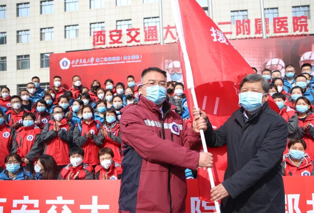 在2020年初始新型冠状病毒感染的肺炎疫情肆虐的严峻形势下,西安交大二附院是陕西省新冠肺炎患者收治的4家省级定点医院之一和全省新冠孕产妇收治的2家定点医院之一,百余名医务人员第一时间奋战在医院发热单元等抗疫一线。同时,我院积极响应国家卫健委的号召,吹响驰援湖北的“集结号”,冲锋到抗击疫情一线的战斗中去,医院分别已累计派出3批144人的医疗队驰援武汉开展援助工作,在武汉市第九医院、武汉协和医院西院区、同济医院中法新城院区都留下他们奋斗抗疫的印记。