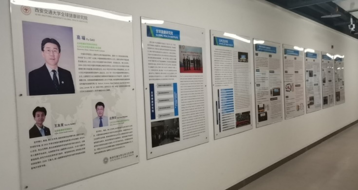 本次项目内容涵盖全球健康研究院Logo墙、展板、铜牌、实验室腰线等。其中Logo墙面积12米12×2米84,进行了底板施工,烤漆精工字安装,灯箱制作,历史照片展示等。展板制作涉及全球健康研究院及下设系统科学与健康大数据研究所、慢性病预防控制研究所、传染病预防控制研究所、环境与地方病防治研究所、营养与食品安全研究所、计算机房等。铜牌制作涉及各研究所名称,学院国家卫健委微量元素与地方病研究重点实验室、陕西省营养与食品安全工程研究中心、陕西省丝路区域地方病与健康促进协同创新中心等省部级重点实验室名称等。腰线制作涉及全球健康实验平台、生物样本库、医学大数据分析实验室等实验平台和学生研习室等。