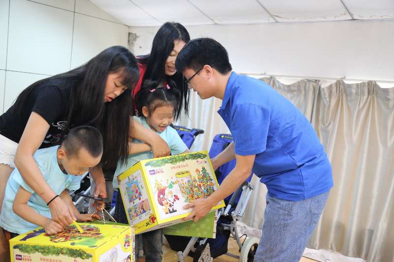 在活动中,西安交通大学的志愿者们为孩子们发放了精心准备的“微心愿”大礼包,礼包包含的逻辑狗等益智类玩具。这是去年西安交通大学“星星的孩子”公益项目在社会公众的帮助下为自闭症孩子筹集到的。据医学专家介绍,这些玩具都将对孩子们的康复很有帮助。