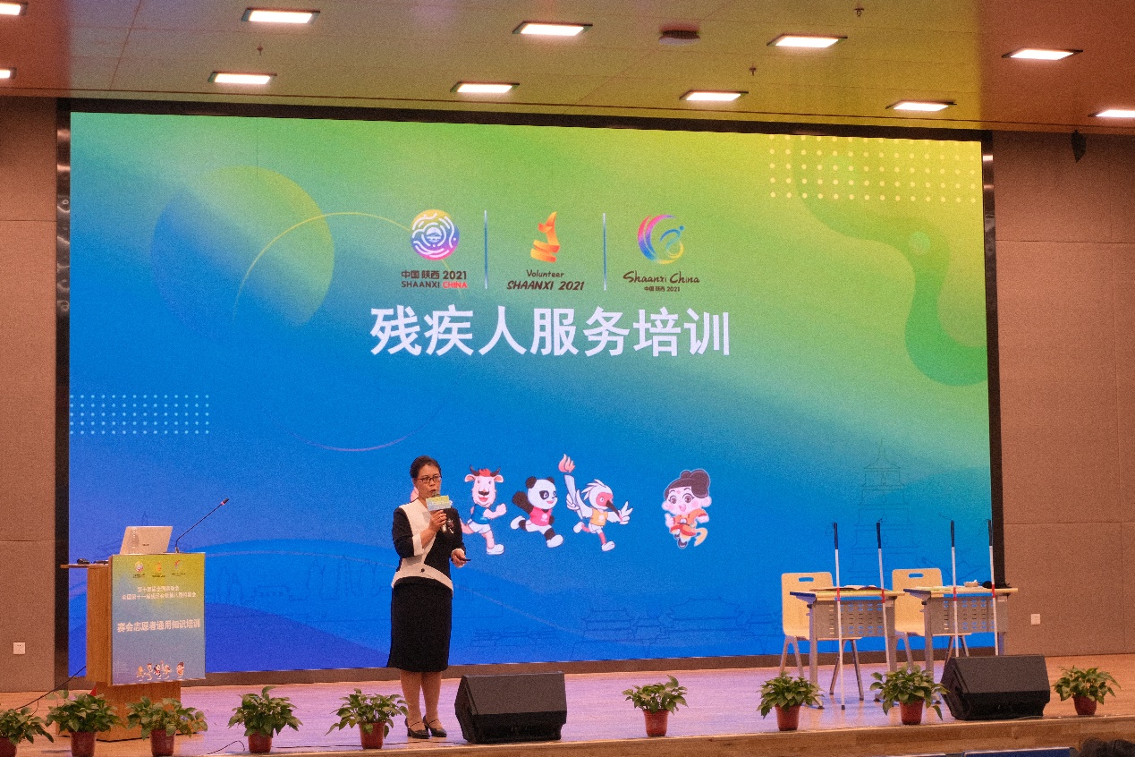 此次培训邀请了具有大型赛事服务经验的资深志愿者和多名相关领域的知名人士,以培养志愿者的综合能力为出发点,围绕全运会、残特奥会常识、志愿者通用政策解读、残疾人服务培训、赛会礼仪形象培训、陕西省情概论、志愿者心理调节、志愿者角色认知与志愿服务概述、赛会应急事件处理与急救技能训练八个专题进行,让每位志愿者全方位了解志愿服务精神,争做一名优秀的“小秦宝”。
