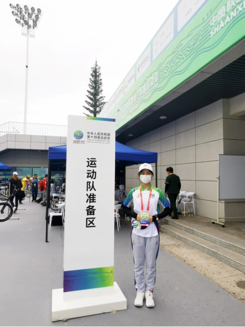经过多次培训后,2021年6月,王紫婷迎来了第一次培训成果检验的机会—十四运会小轮车测试赛。测试赛期间,王紫婷不仅要每天4点起床,还要在35度的天气中站立一整天,虽然又累又热,但是她不曾抱怨,依旧用真诚热情的服务、细致严谨的态度投身于志愿服务当中。