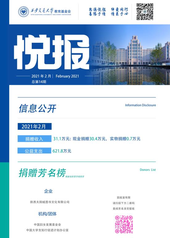 【思源悦报 伴爱同行】西安交通大学教育基金会2021年2月悦报